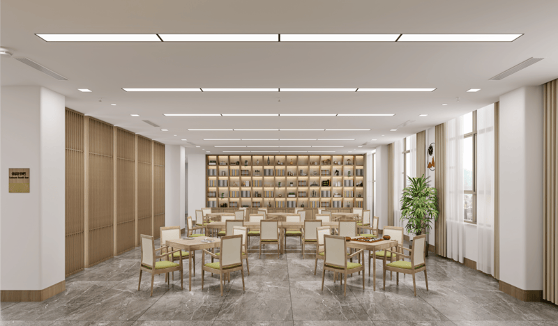 每餐两道菜分软硬程度,康复实力凸起。14000平米天井内,将东方美学取康养完满融合。棋牌室、阅览室、书法室、健身室、多功能厅等设备满脚休闲取社交需求,同时也是医点机构,房间内 24 小时新风系统、智能马桶、医疗呼叫等一应俱全。